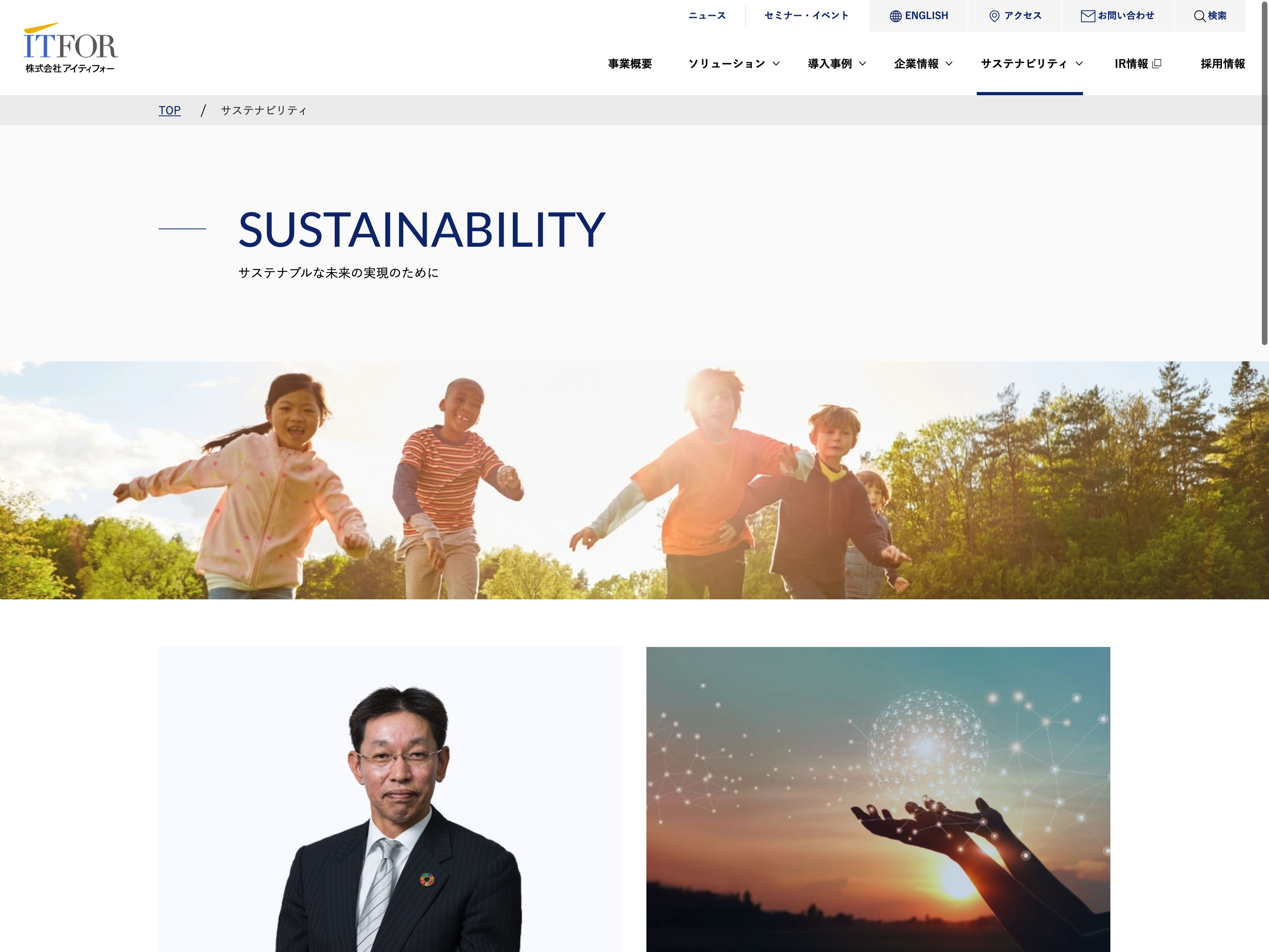 アイティフォー Update:2022.10.31 カテゴリー:プライム 情報・通信業 コンプライアンス サステナビリティ ニュース一覧 プライバシーポリシー 事業内容 沿革 社長メッセージ 経営理念 詳細 Visit 詳細 Visit