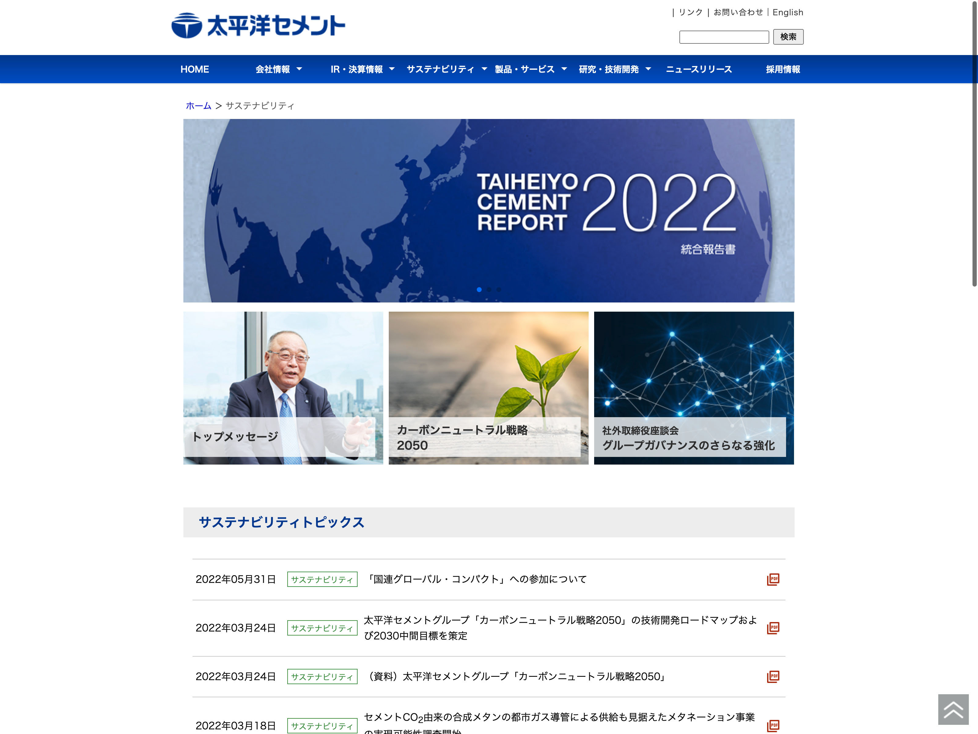 太平洋セメント Update:2022.10.31 カテゴリー:プライム ガラス・土石製品 サステナビリティ ニュース一覧 プライバシーポリシー 免責注意事項 有価証券報告書 沿革 経営理念 詳細 Visit 詳細 Visit