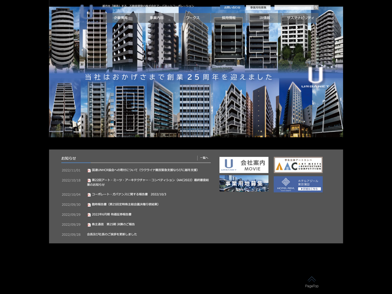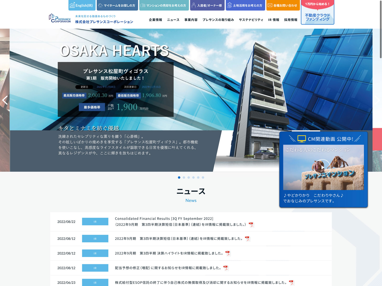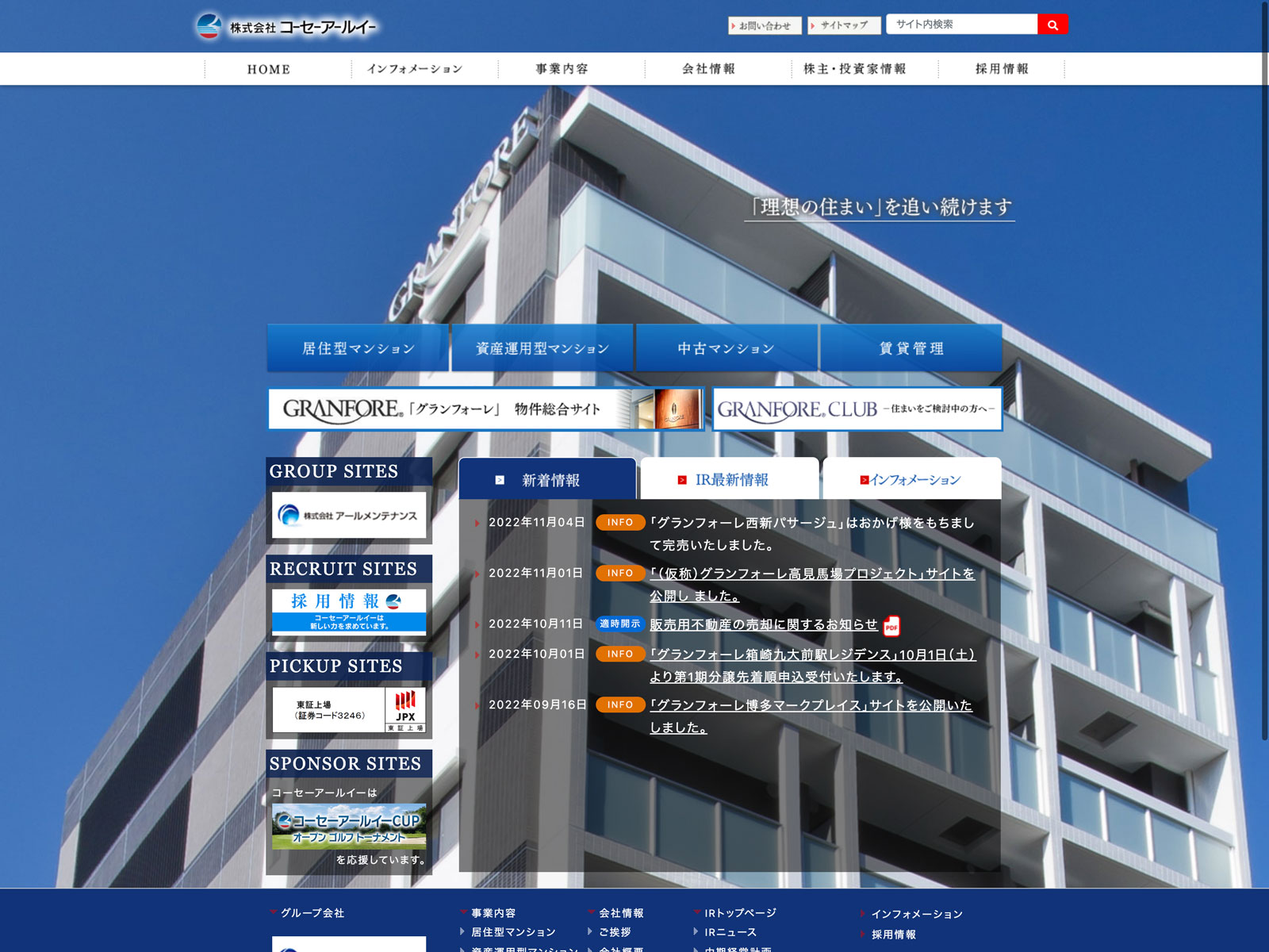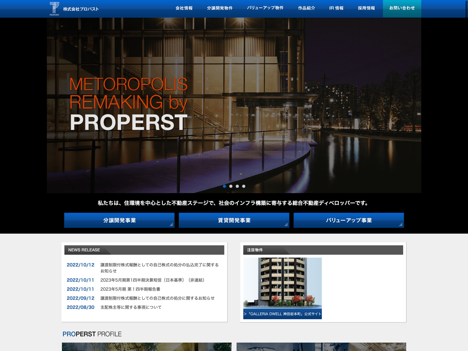 カテゴリー:スタンダード 不動産業 ニュース一覧 事業内容 免責注意事項 有価証券報告書 沿革 社長メッセージ